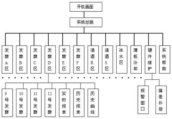 本公司开发的啤酒发酵测控与管理系统,是集自动化仪表技术、自动控制理论、微机控制技术、微机网络技术、集散系统技术于一体,具有自动化程度化高、结构紧凑、操作简单方便、可靠性高等特点。由于采用了全自动控制方式,消除操作人员人为因素的影响,提高了控温精度,为发酵过程提供准确可靠的过程控制,保证产品质量的长期稳定。由于系统可以保存长达二年以上的运行数据,为溯源分析影响产品质量的因素提供了准确、系统的数据,从而可提高发酵工艺水平及生产管理水平。本公司开发的测控软件是在组态王系统的基础上研制开发的,具有直观,画面的运行和实际同步,以及设备运行中的各种非法状态均会以颜色或文字提示您。